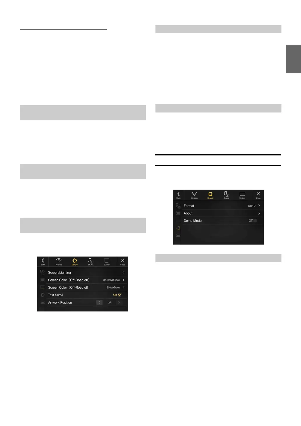 • The initial setting for Off-Road on mode is “Off-Road Green”, and for