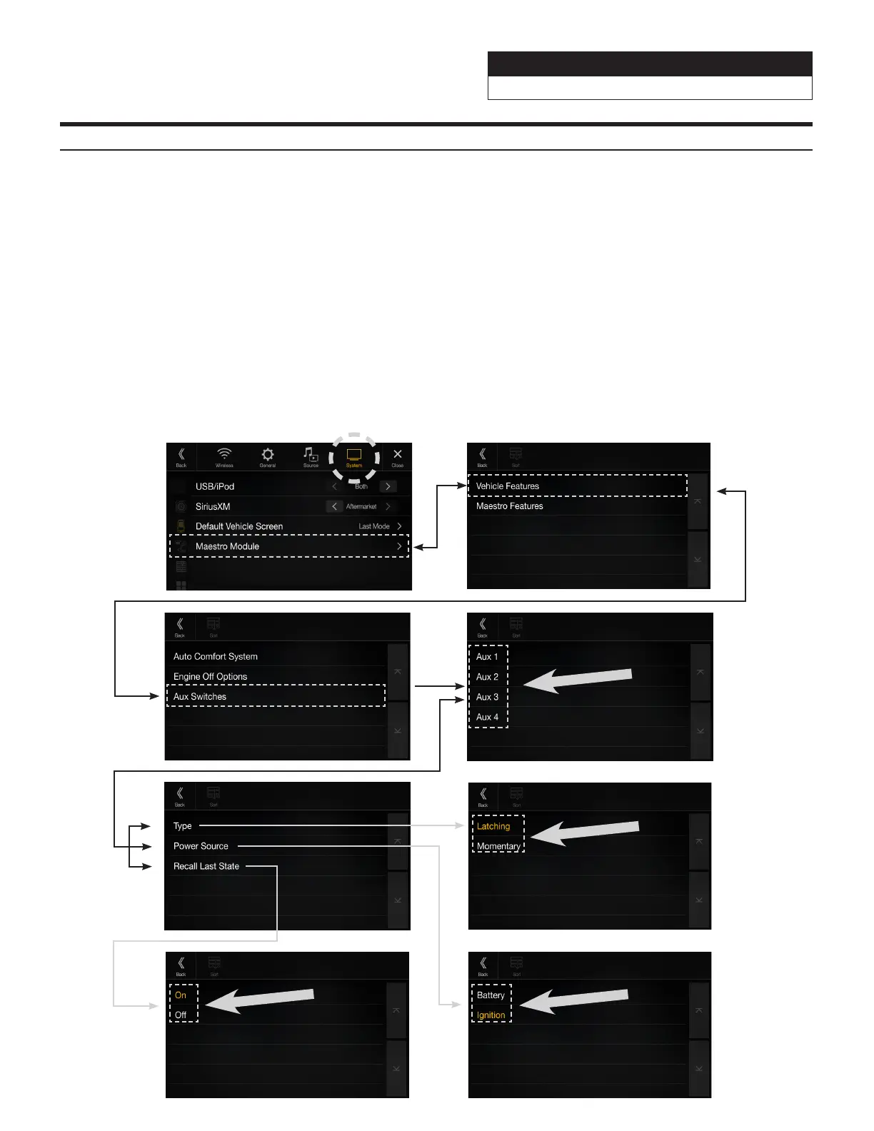 3 Select AUX SWITCHES.