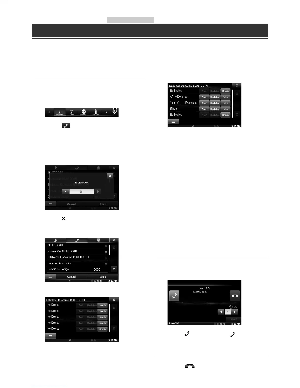 4 Toque [o] o [p] de “BLUETOOTH” para