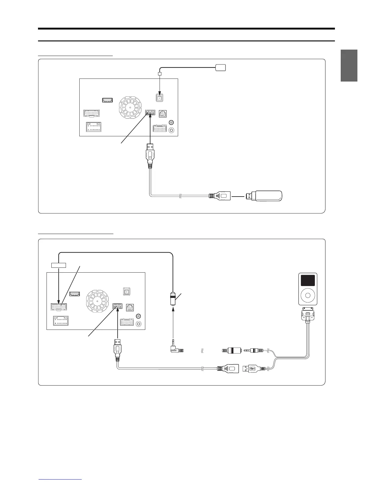 • To connect an iPod/iPhone, an optional connection kit KCU-461iV is required.