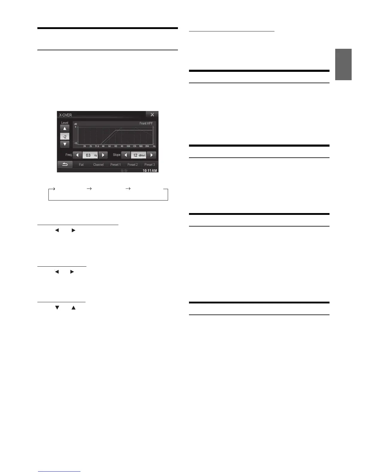 [X-OVER] is selected on the Sound setup menu in step 3. Refer to
