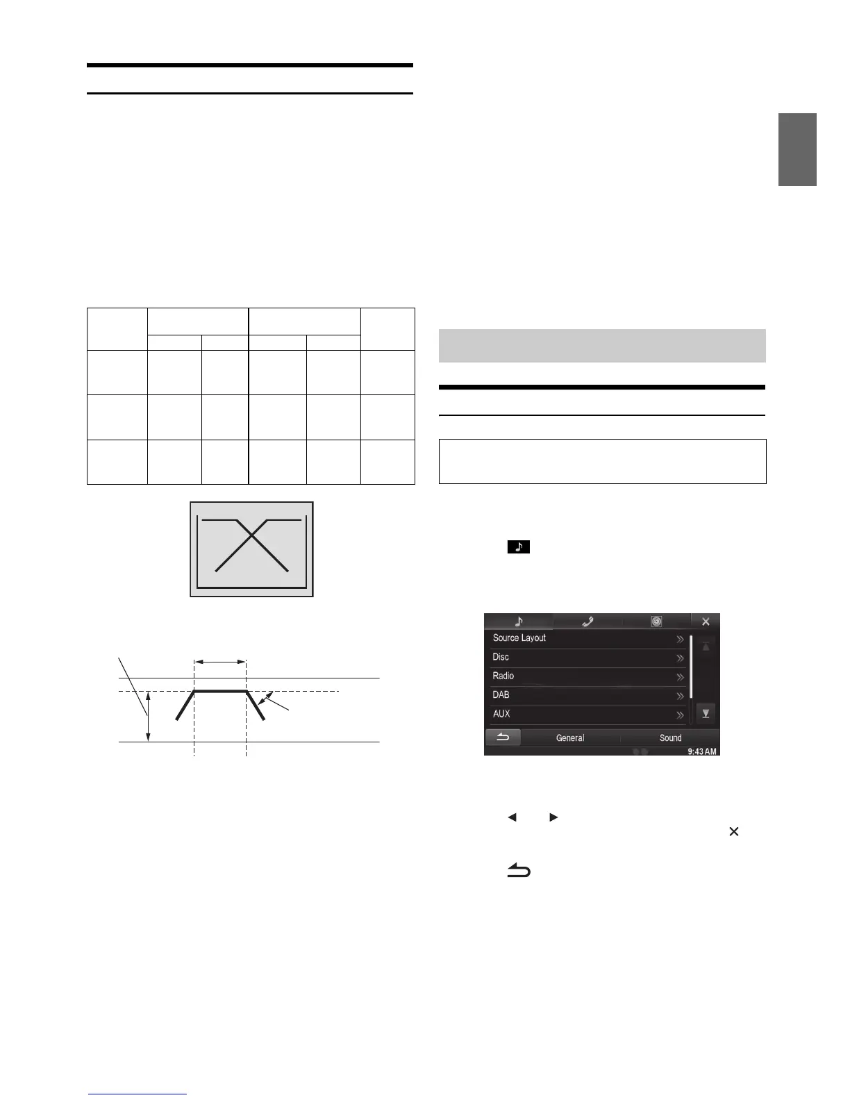 Setting items: Source Layout / Disc / Radio / DAB / AUX / RSE /