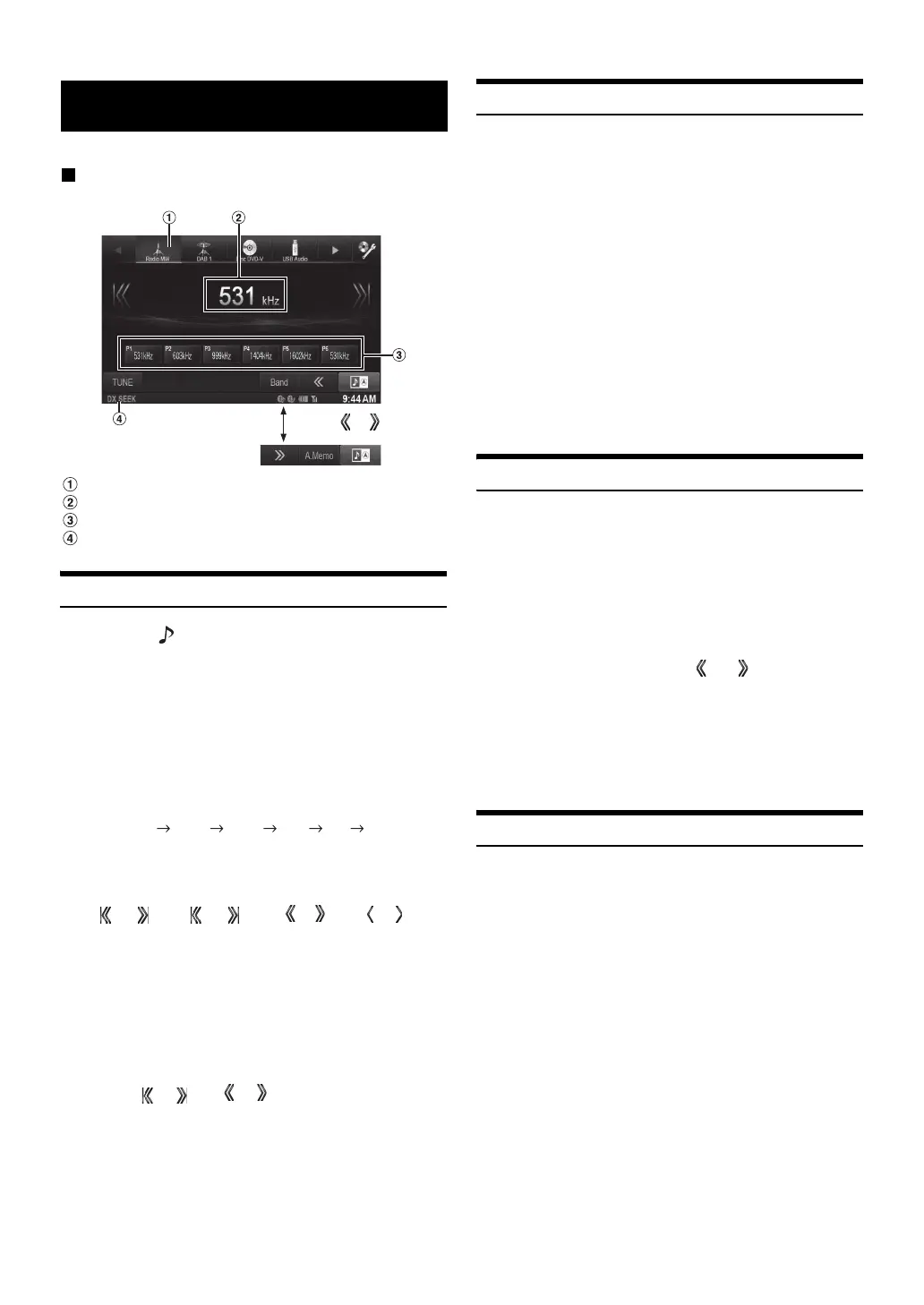 Touch [], [] or [], [] to change the radio