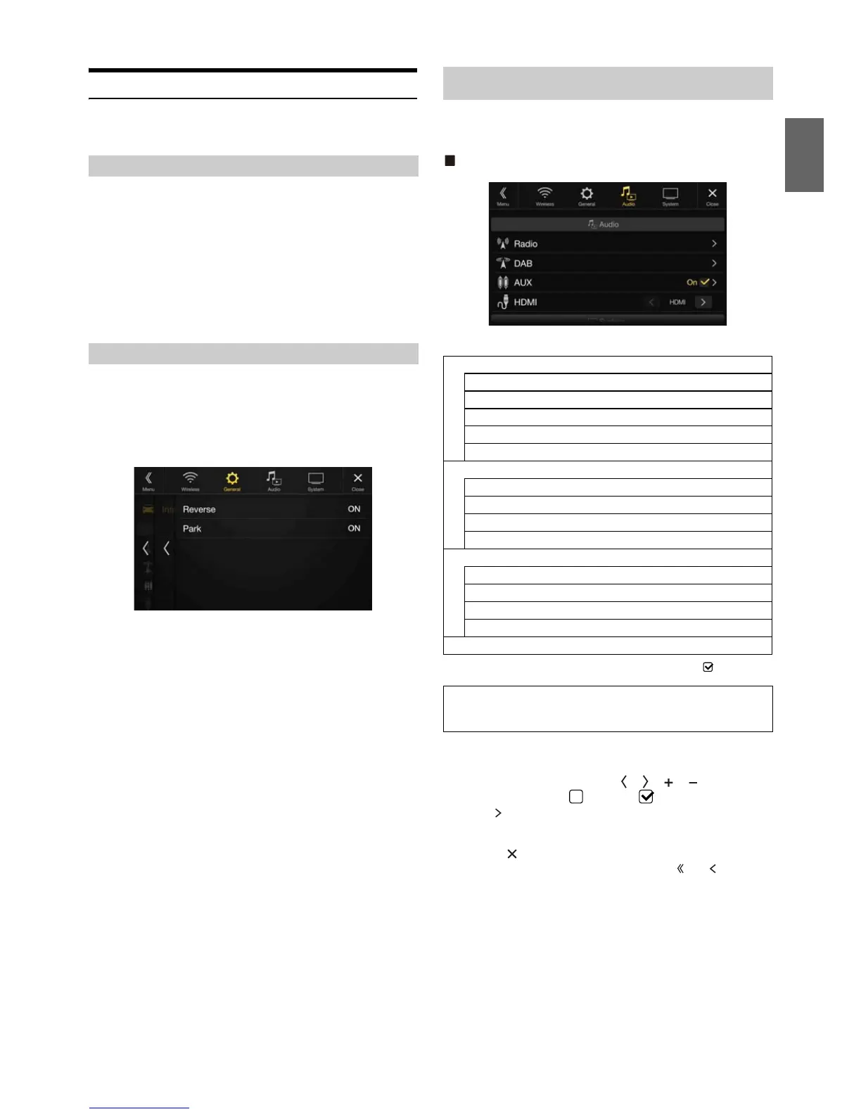 * This setting is only available when “AUX” is set to “On” ( ).