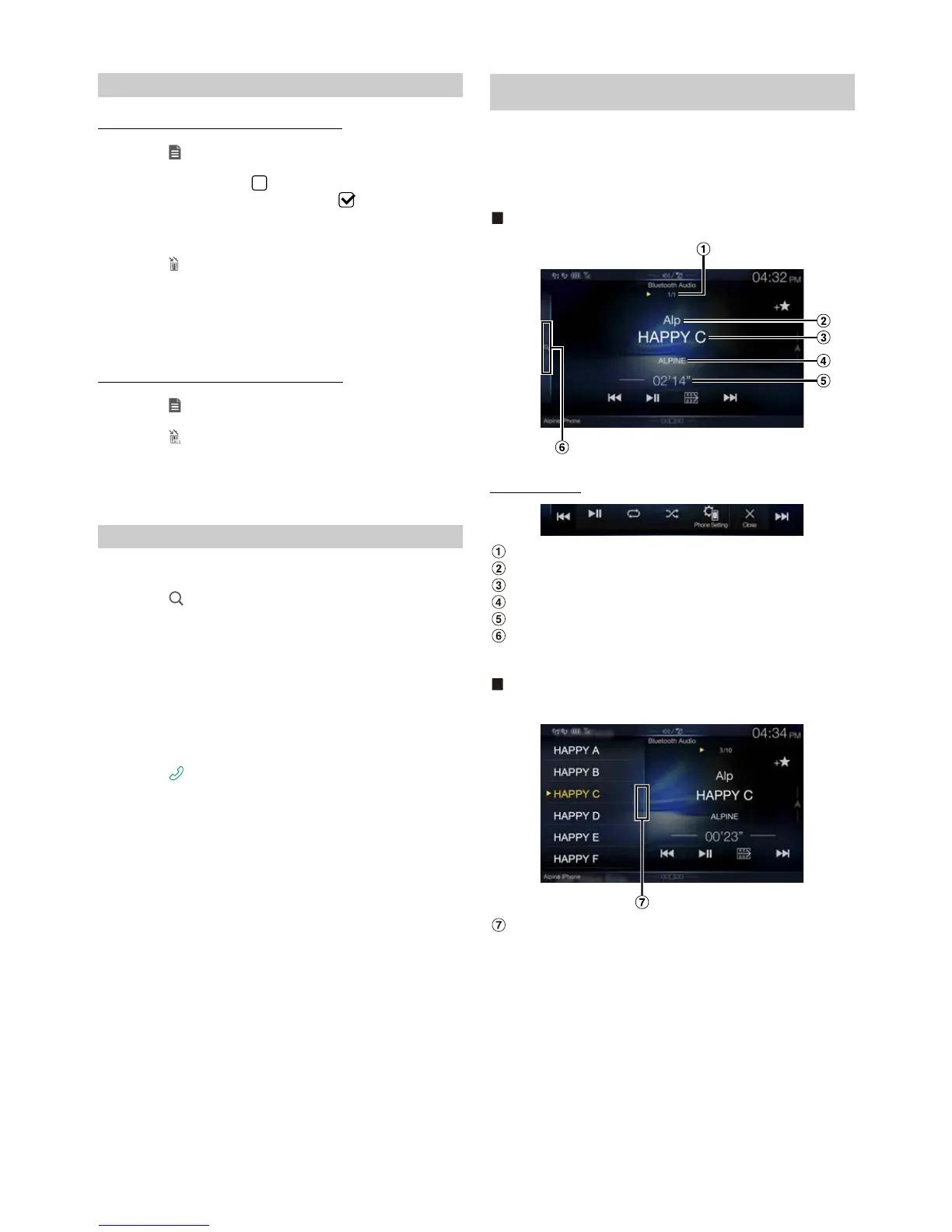 • The displayed onscreen buttons may differ depending on the AVRCP