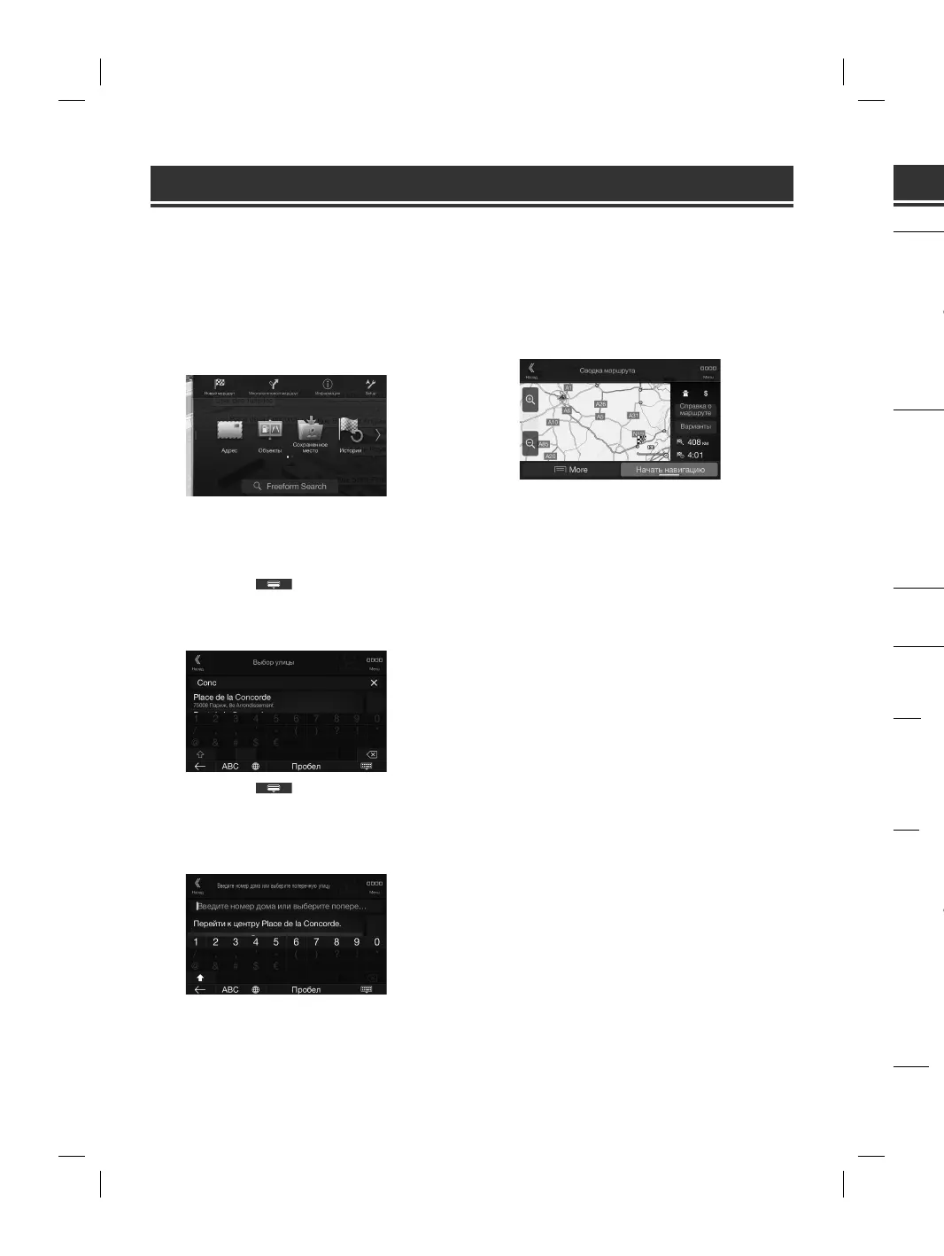 Пример ниже описывает процесс поиска пункта назначения путем выбора меню [Город/индекс] в меню