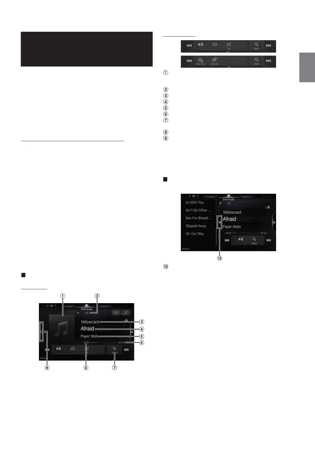When the unit is connected by the above cable, the controls on the iPod