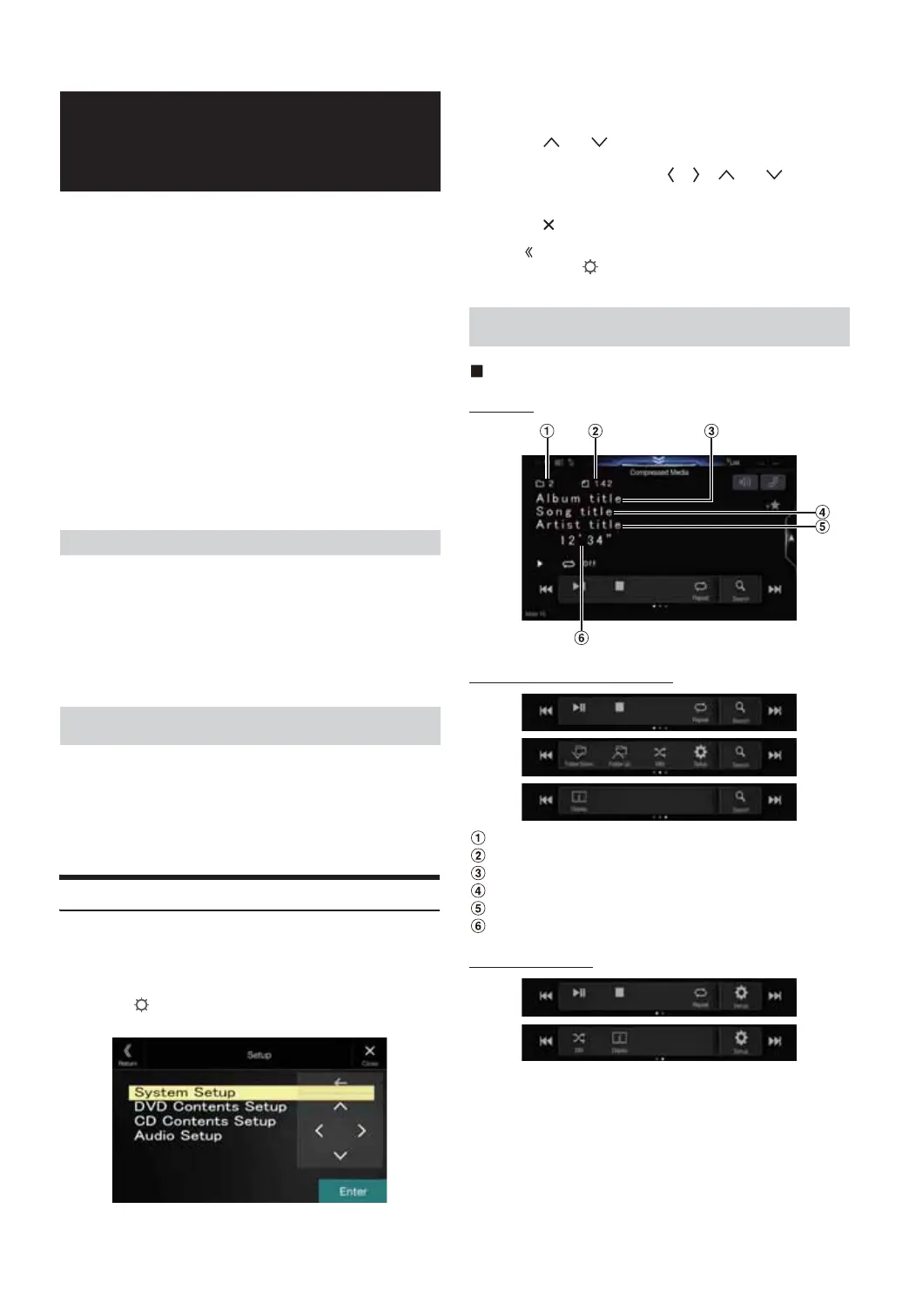 System Setup / DVD Contents Setup / CD Contents Setup / Audio Setup