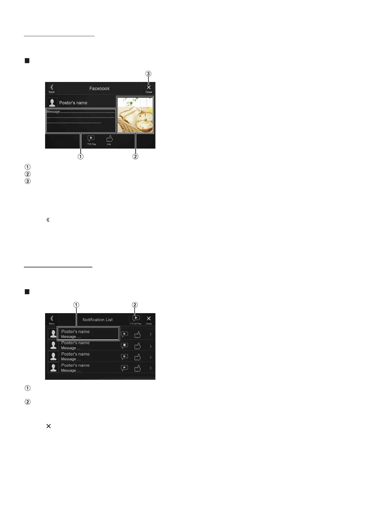 • Facebook screen is not displayed while driving.