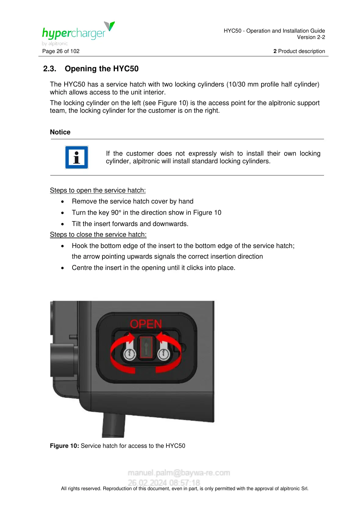 The HYC50 has a service hatch with two locking cylinders (10/30 mm profile half cylinder)