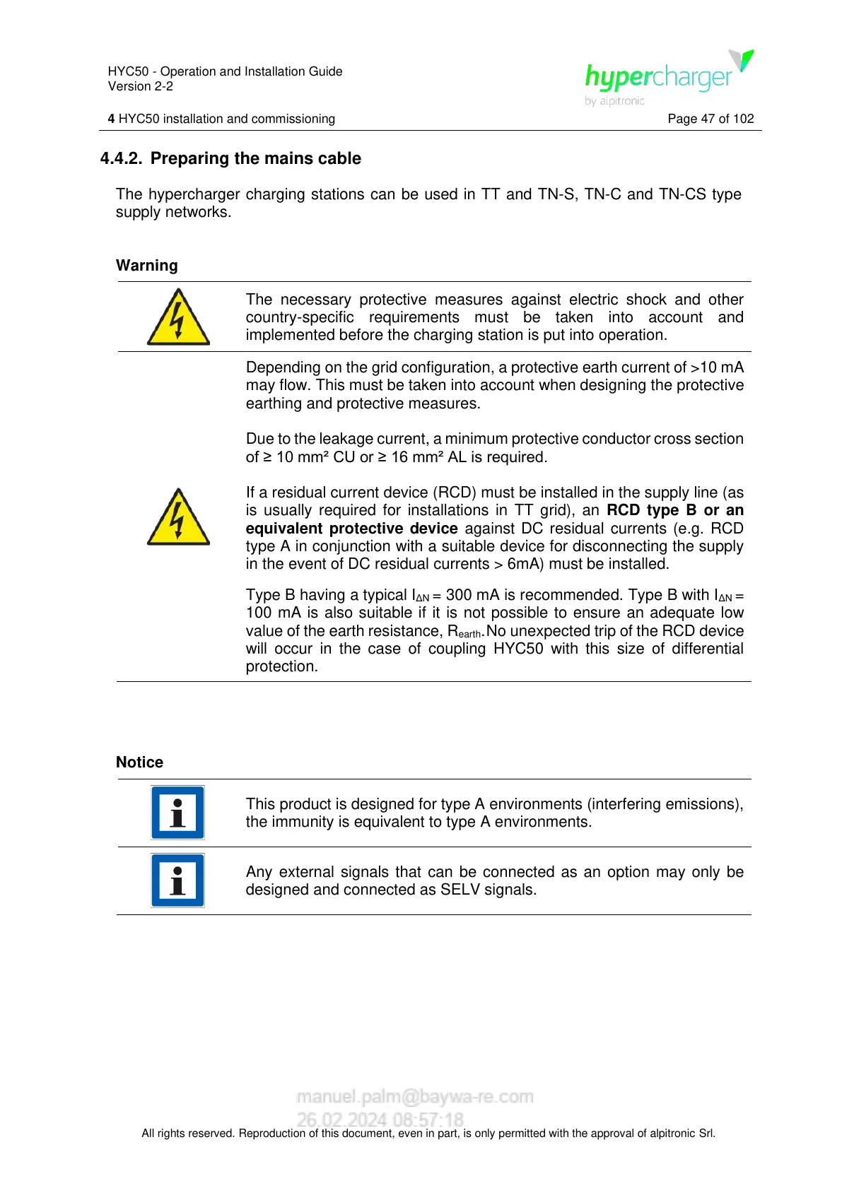 The hypercharger charging stations can be used in TT and TN-S, TN-C and TN-CS type