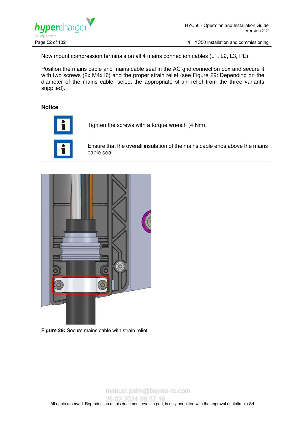 with two screws (2x M4x16) and the proper strain relief (see Figure 29: Depending on the