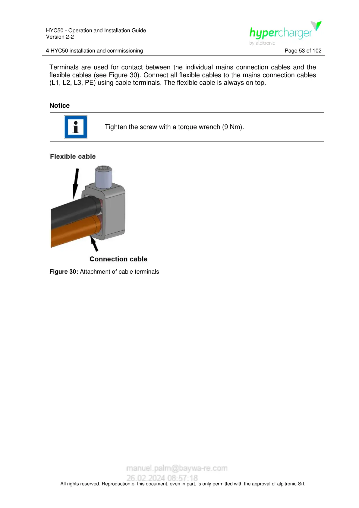 flexible cables (see Figure 30). Connect all flexible cables to the mains connection cables
