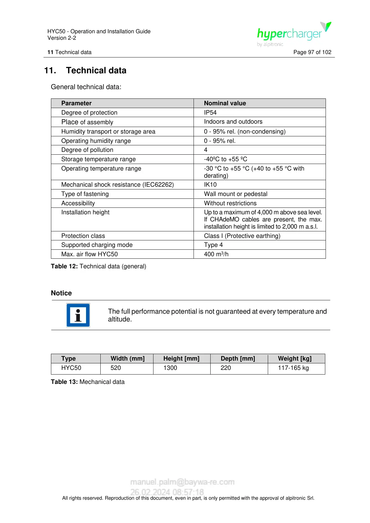All rights reserved. Reproduction of this document, even in part, is only permitted with the approval of alpitronic Srl.