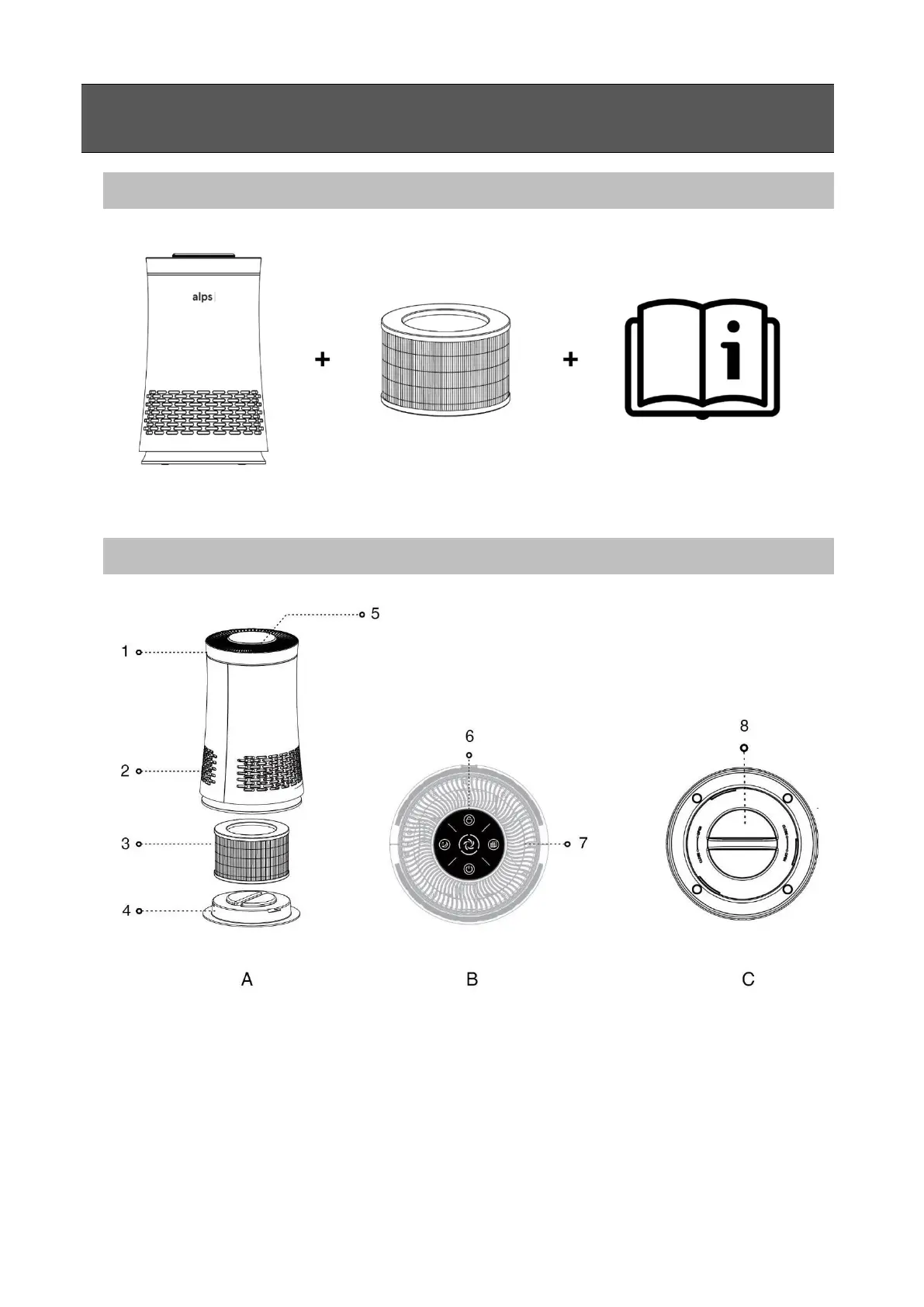 A: Descripción general - B: Vista superior - C: Vista inferior
