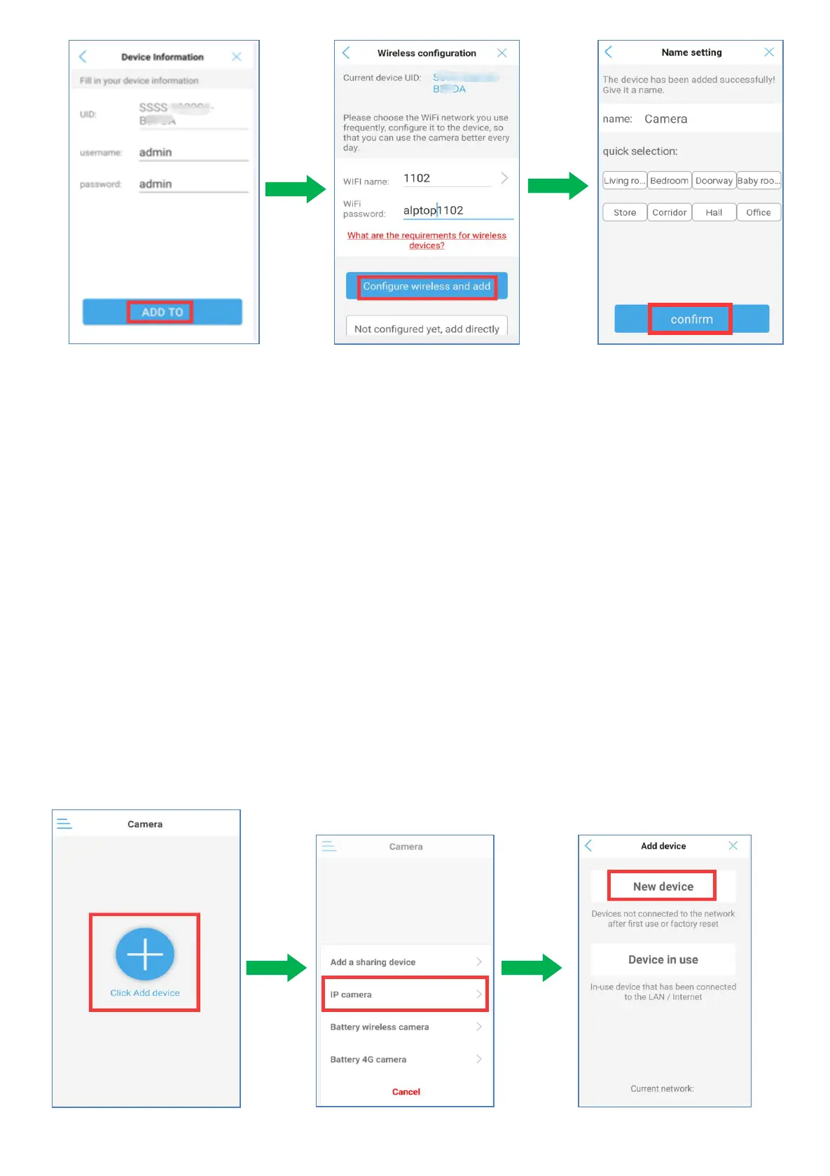 5) Tap “Click Add device” Tap “IP camera” Tap “New device”