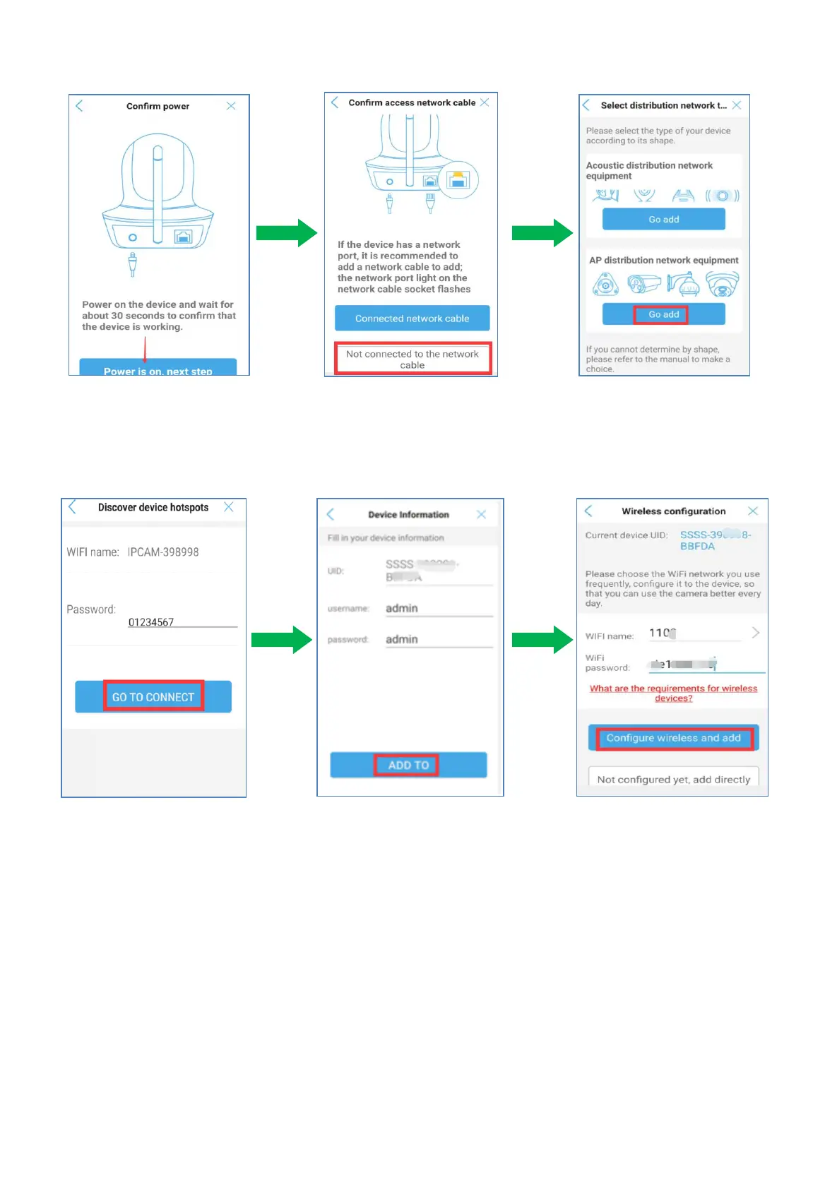 8) Tap “ADD TO”, The default username and password are both set as admin.