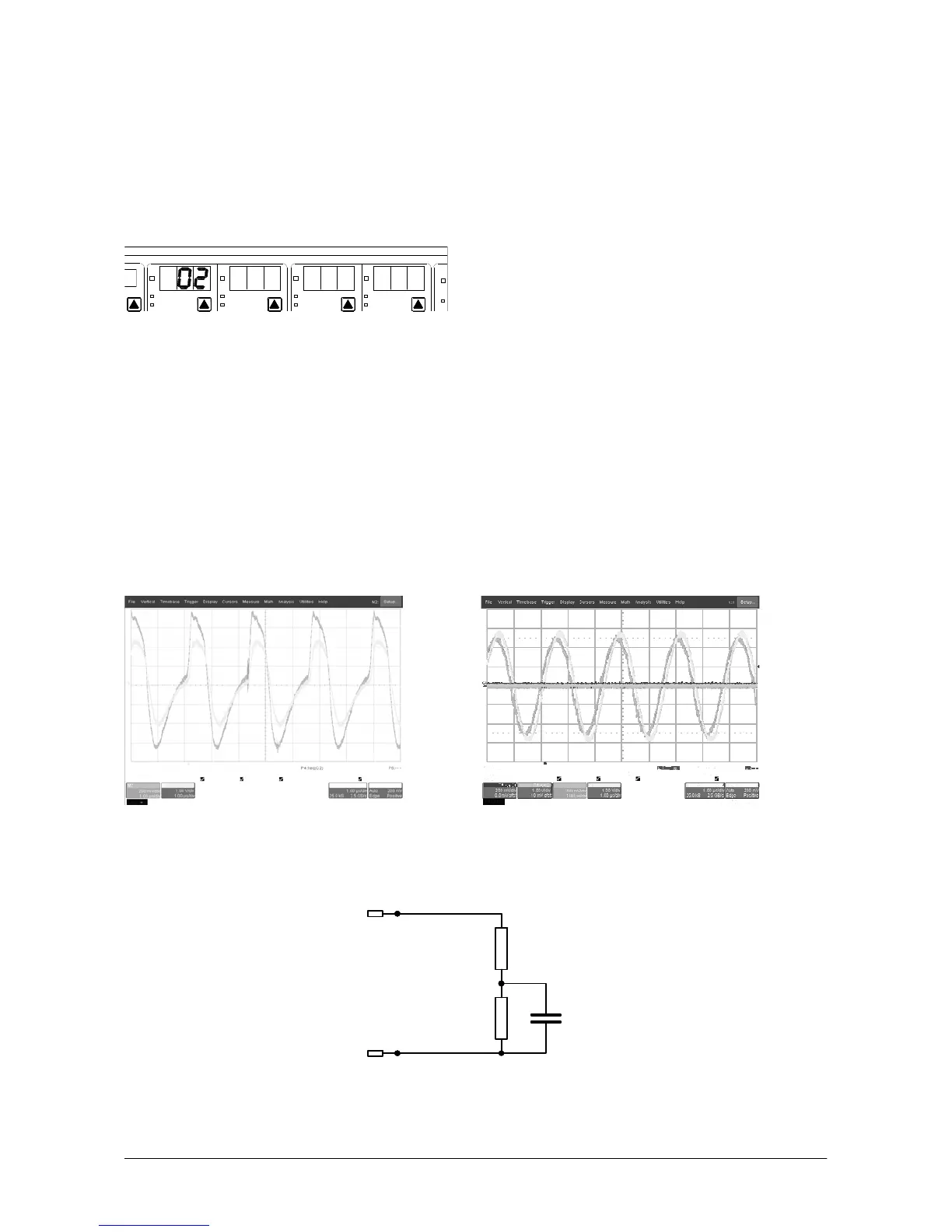 the probes of the oscilloscope to the test points indicated with “V” (TP3) and “I” (TP4); set 22 in the