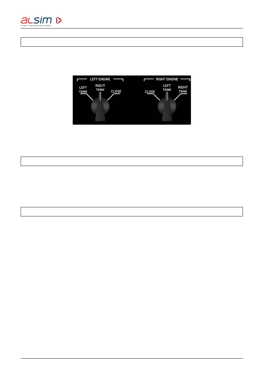The fuel selectors are 3 positions toggle switches located on the lower part of the