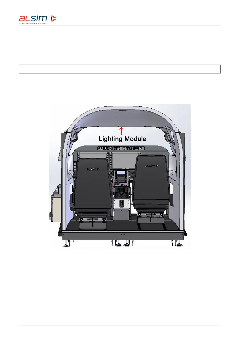 The cockpit is illuminated by a lighting module mounted directly above the flight deck. The