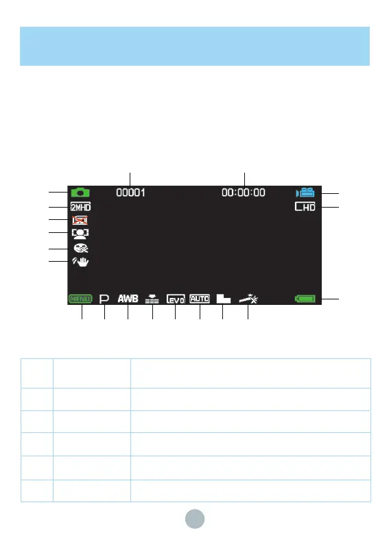 Display information under Video/Photo mode: