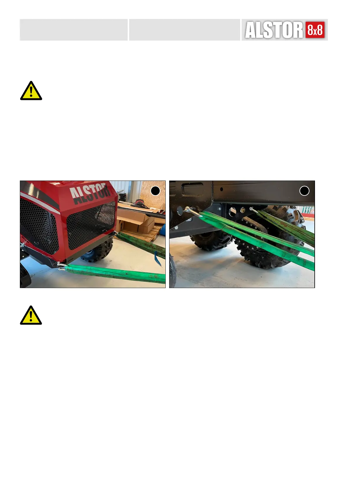 subjected to heavy loads. Check the condition of the tensioning straps and replace them if damaged. Apply the parking brake and switch