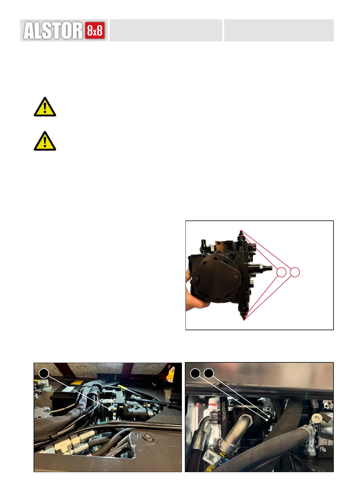 If asituation occurs requiring towing of the Alstor 850/850H/851, the hydrostatic drive train must be disengaged by opening two