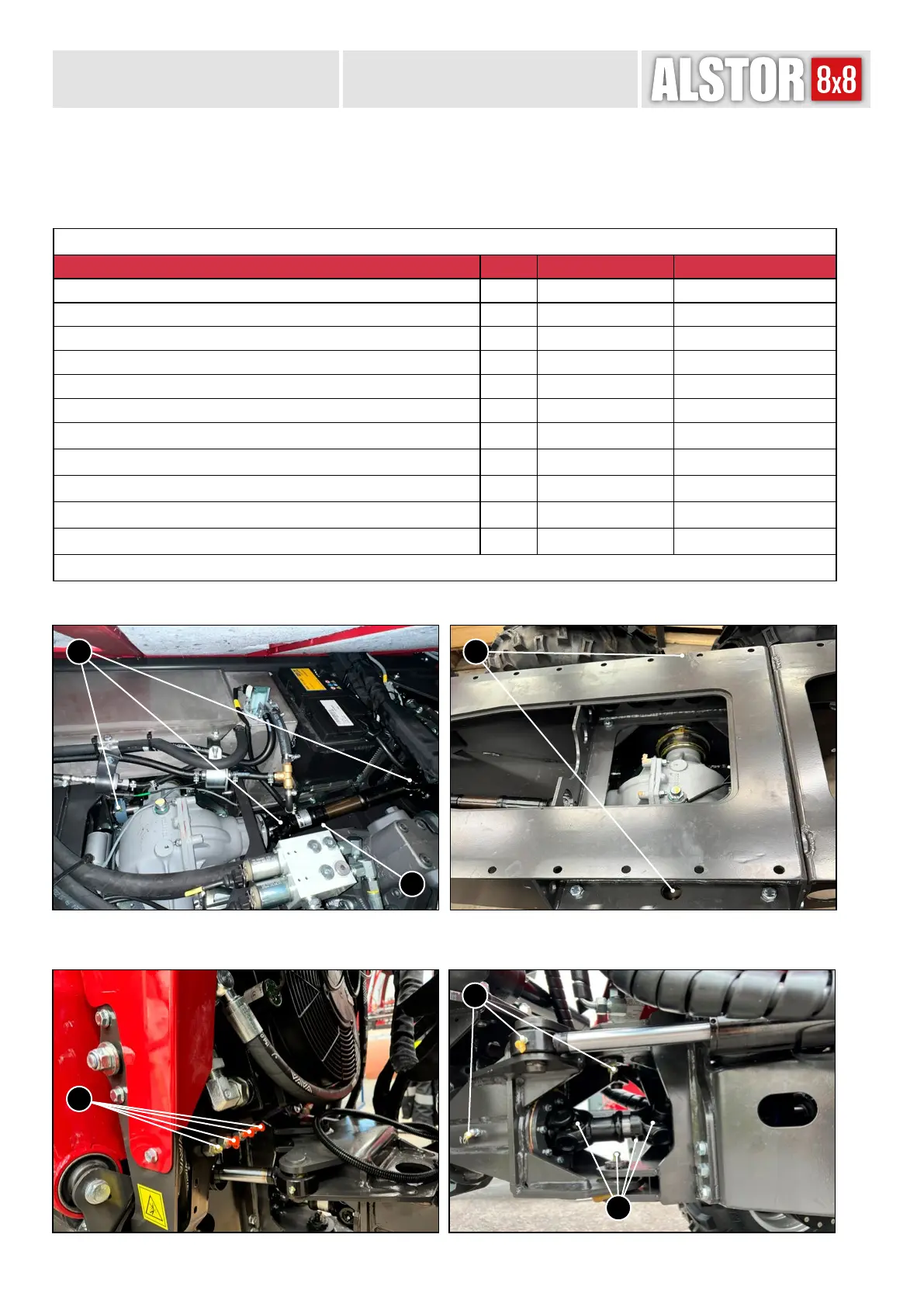 8. Tilt piston cylinder, left and right 4 Grease, see above 50 h