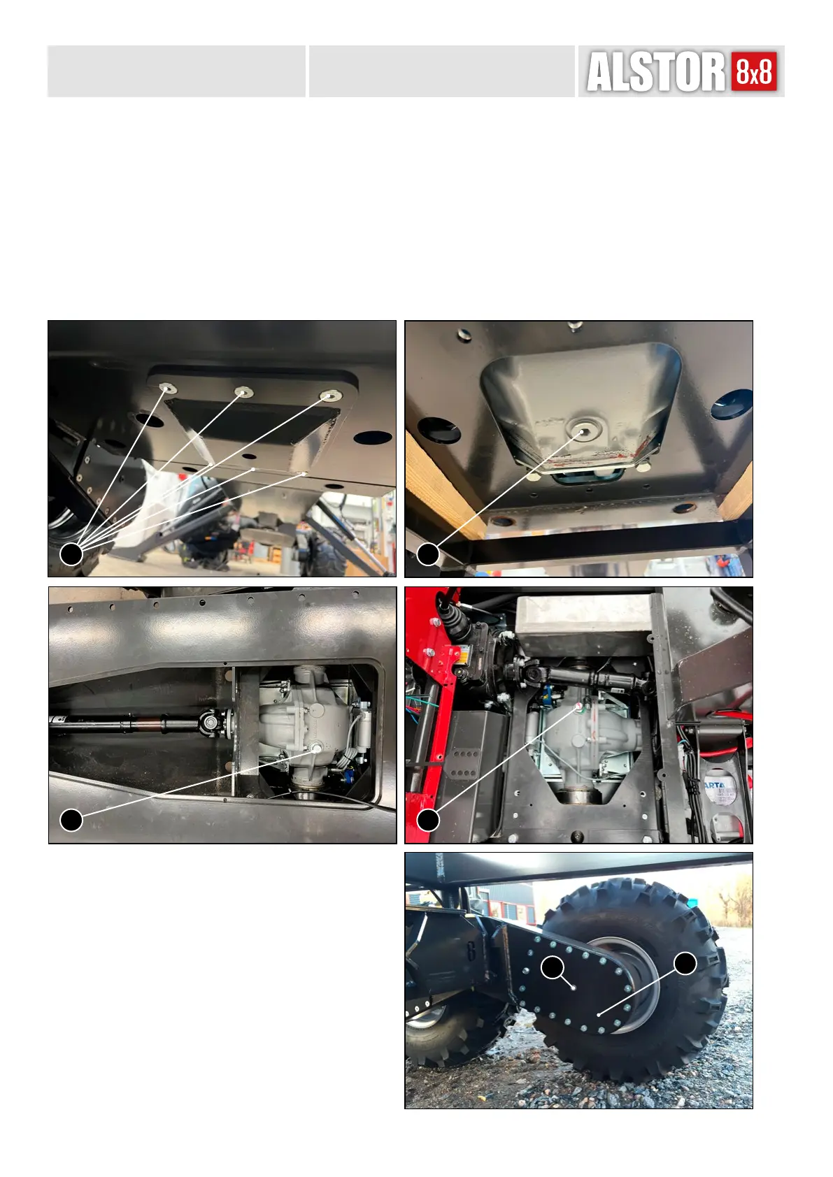 Remove the inspection cover/oor plate. Open the oil ller plug. (3) See the marking in the picture. Fill with new oil at the front and