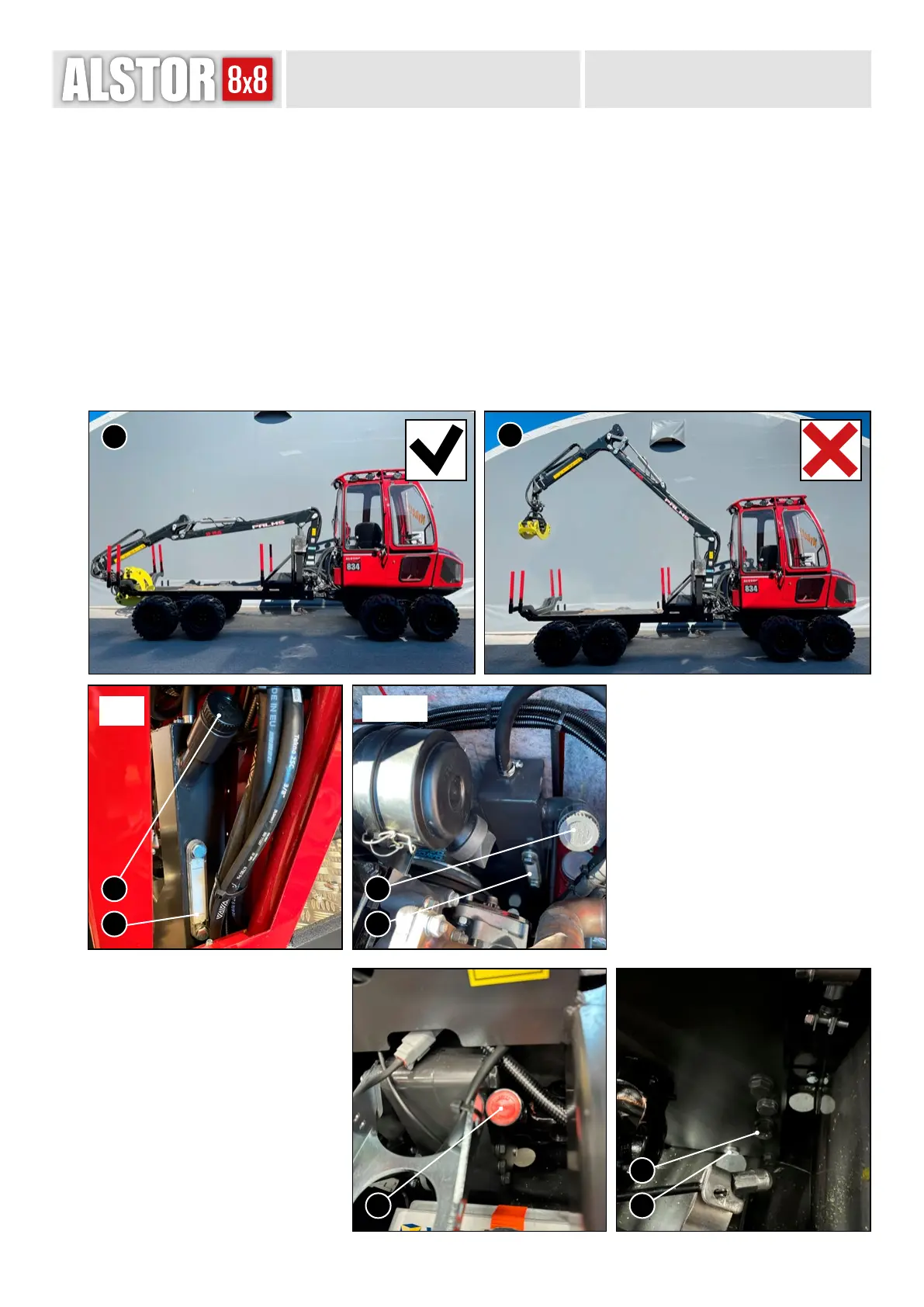 Control: Park the crane according to gure 1. Allow the machine to run warm for at least 5 minutes, and check and adjust so that