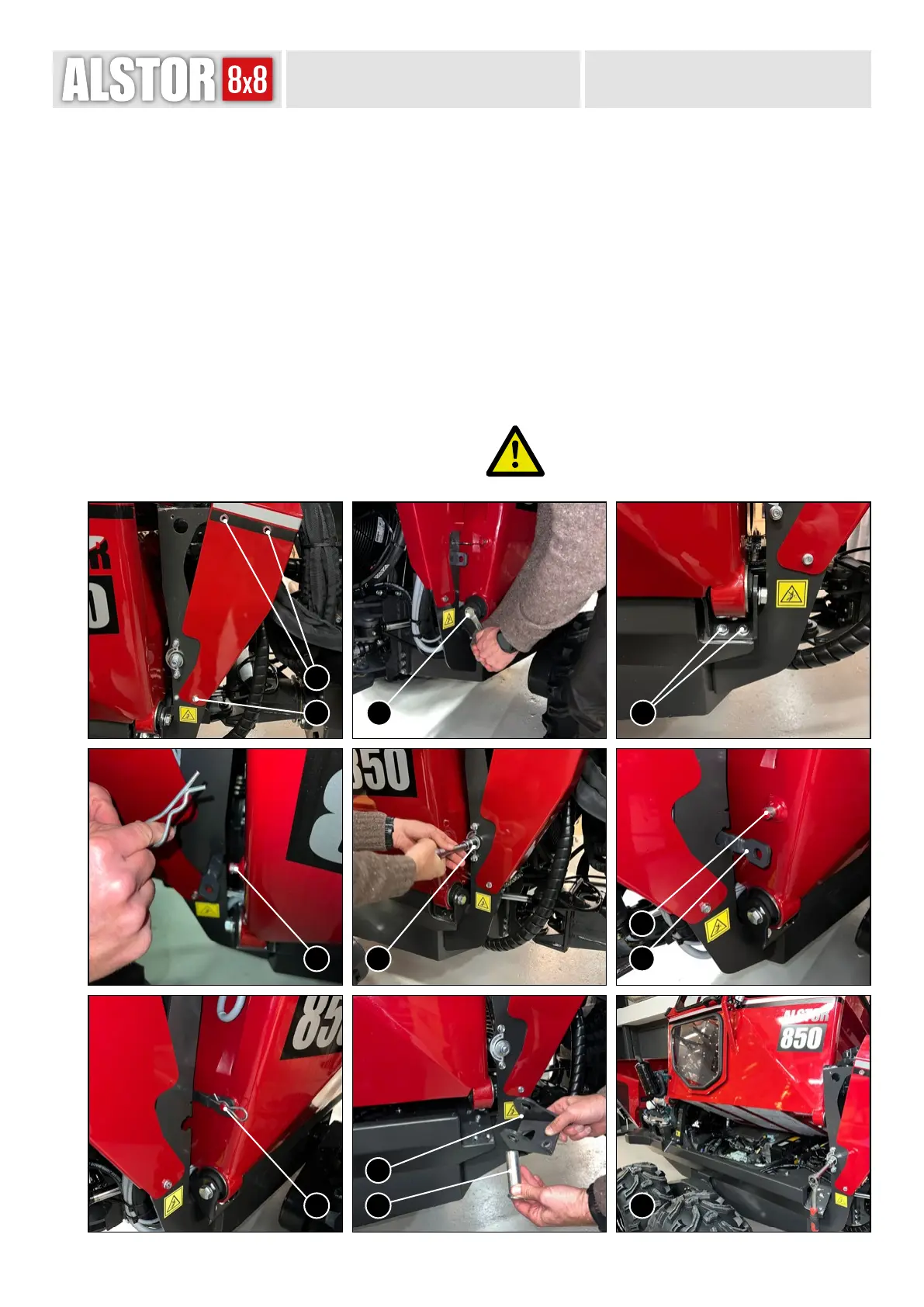 When the cabin is raised 10 cm, loosen the M24 screw and pull