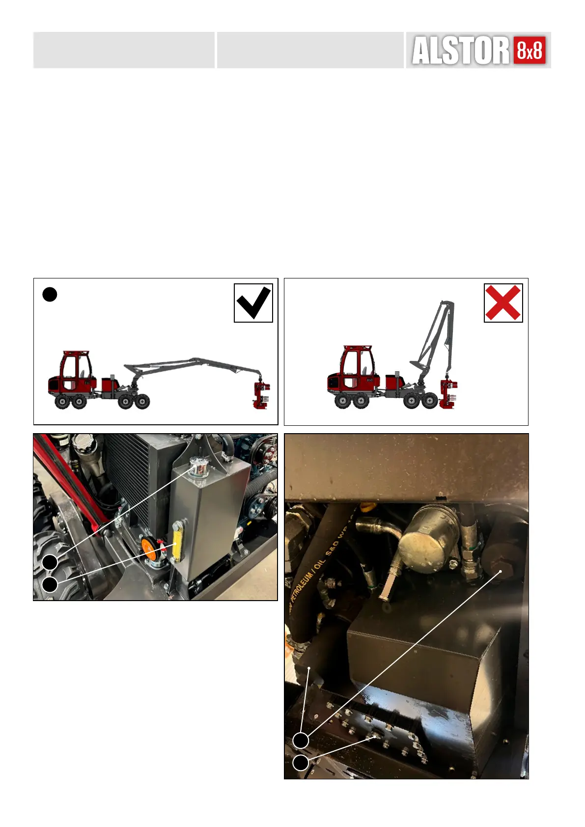 NOTE: Always unload the crane before inspection and replacement of the oil. Park the crane as illustrated in the unloaded position.