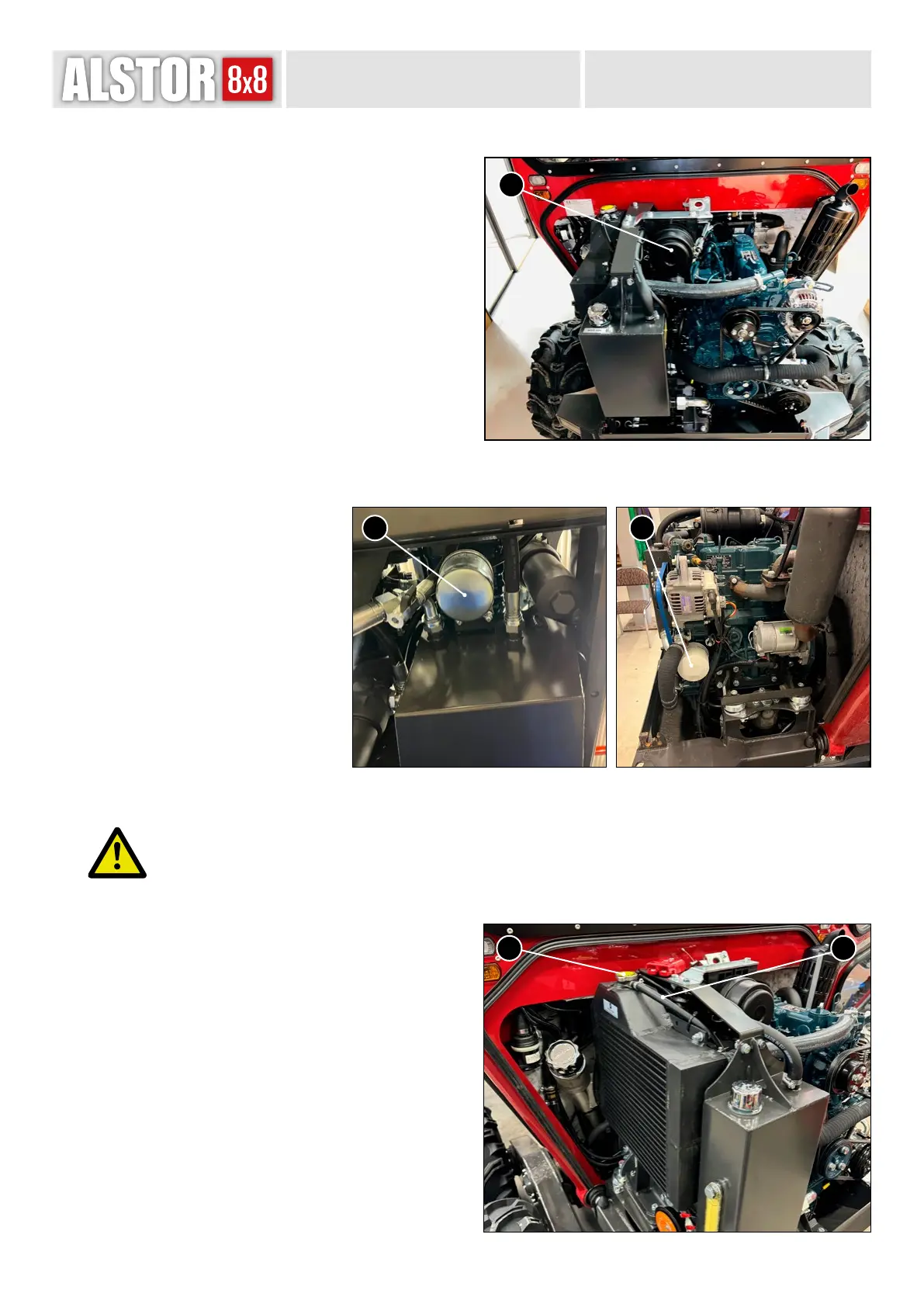 WARNING! Never open the expansion vessel when the engine is warm or when the engine is running – risk of high pressure.