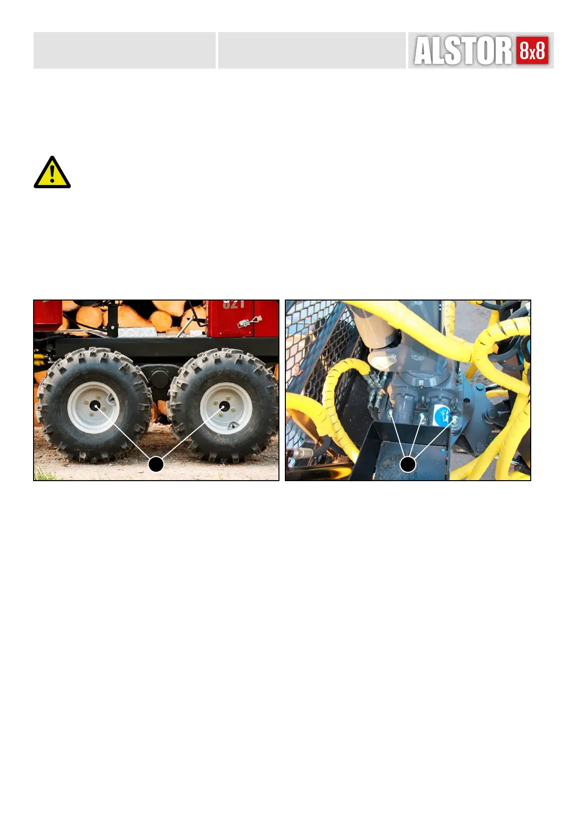 WARNING! After the initial refuelling of the machine, all wheel nuts and crane bolts should be retightened.