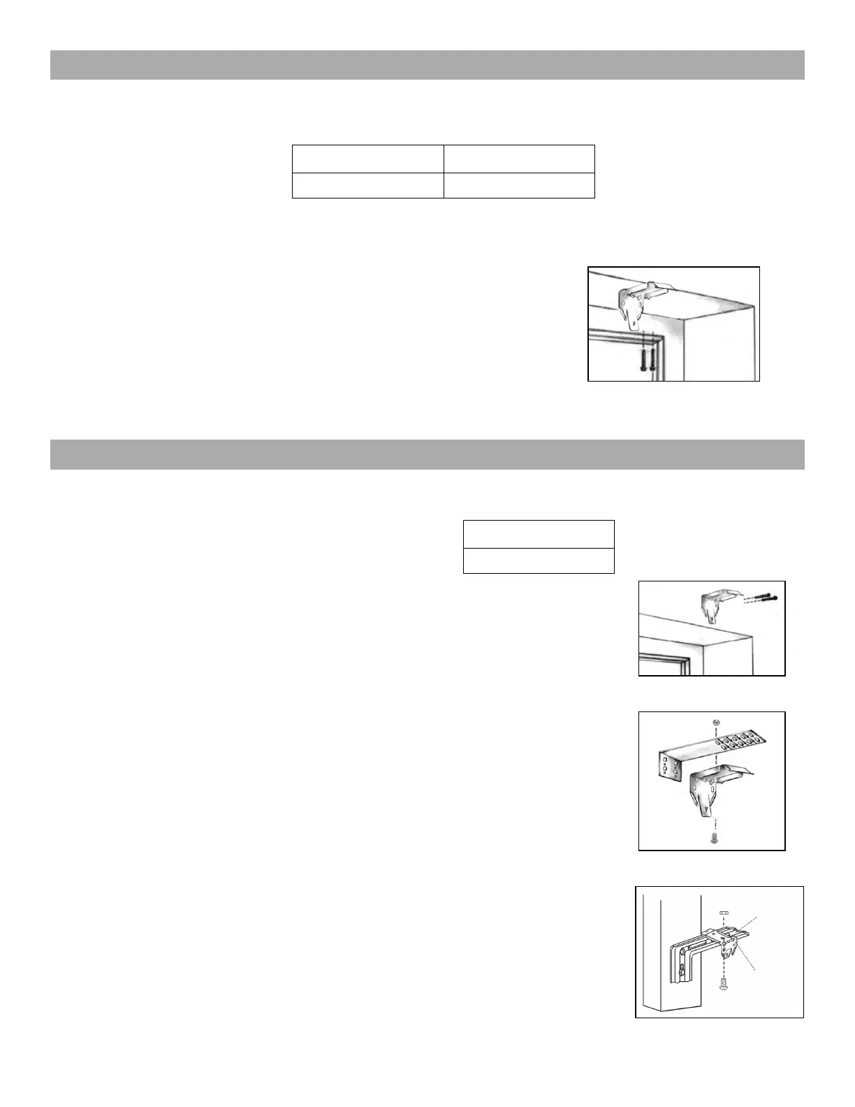 Pour un montage intérieur, les supports d'installation seront vissés en place par les orices (trous) supérieurs de chaque support.