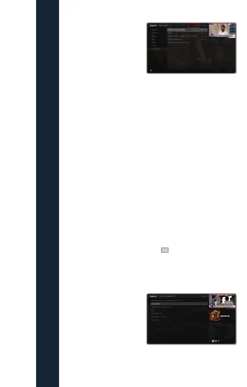view upcoming episodes, or cancel a OnePass. Highlight the show title and press