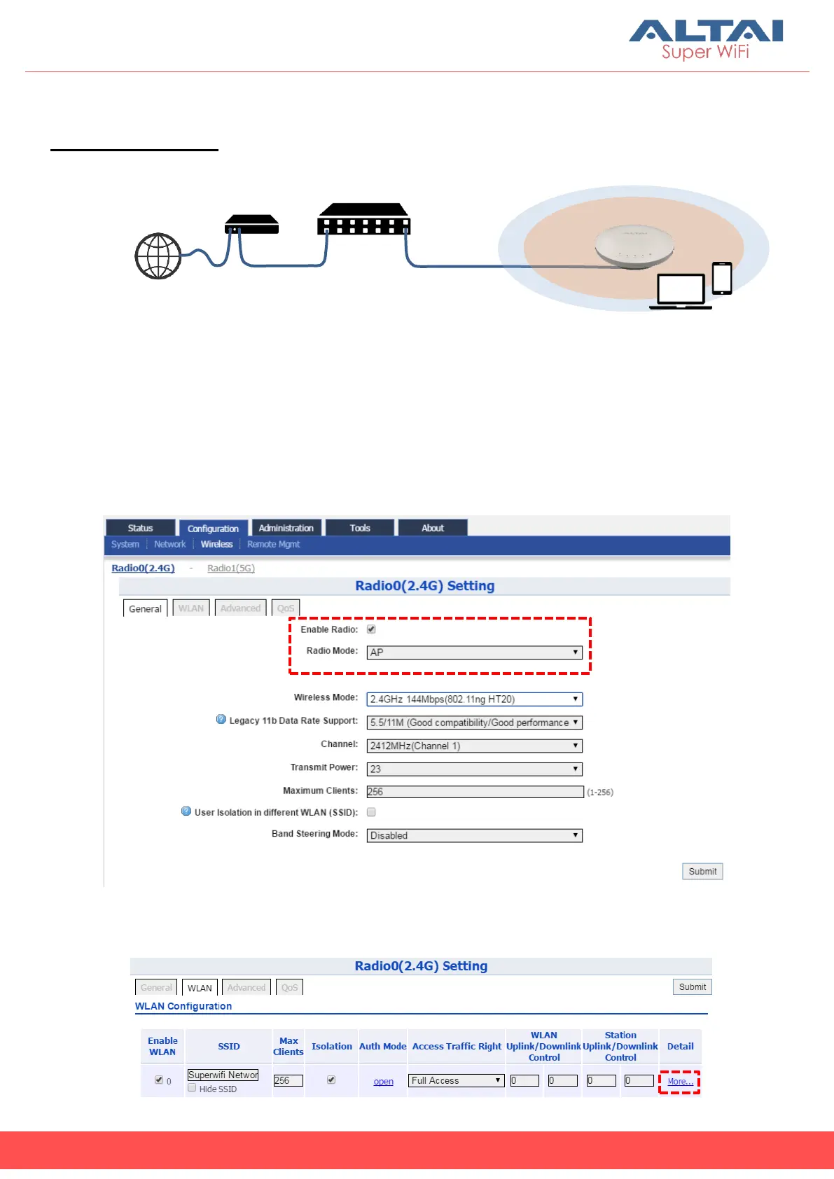 2. Make sure the box of Enable Radio is checked. Select AP mode for the