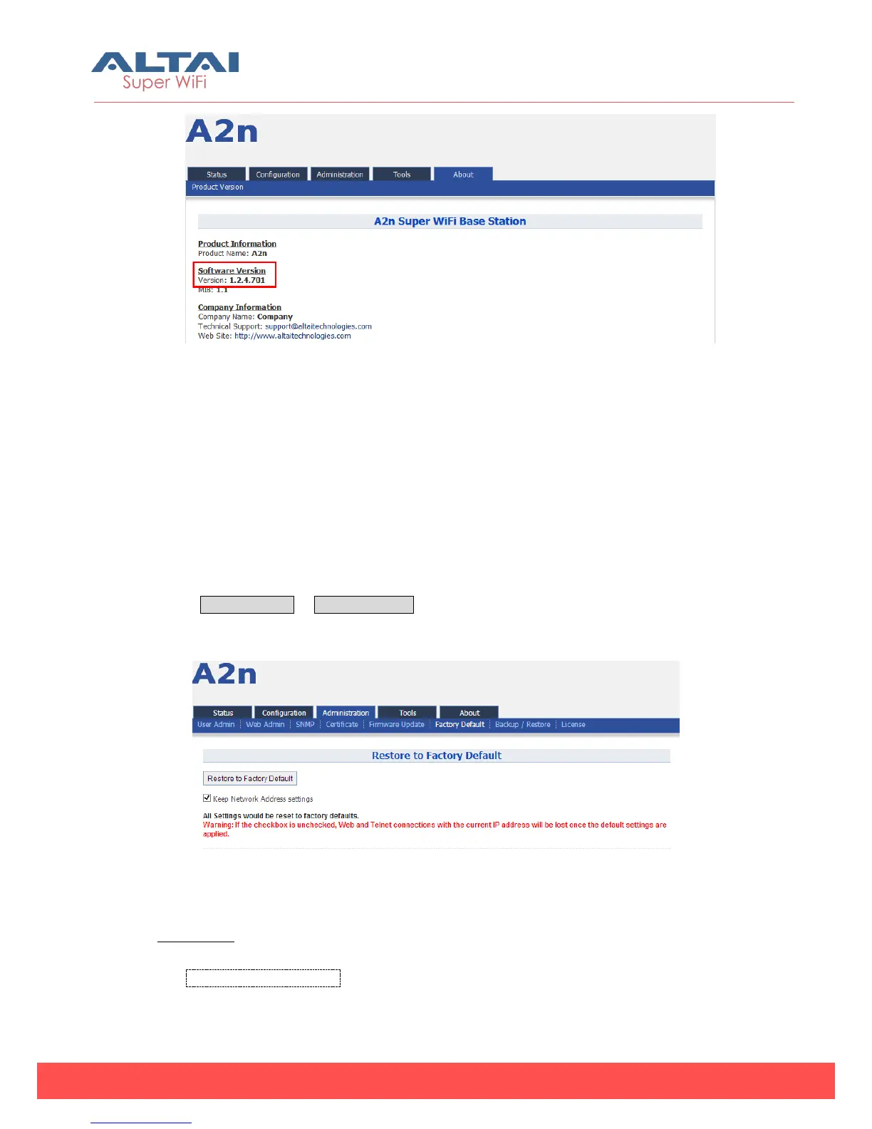 Under Administration -> Factory Default, user can reset the A2n back to Factory