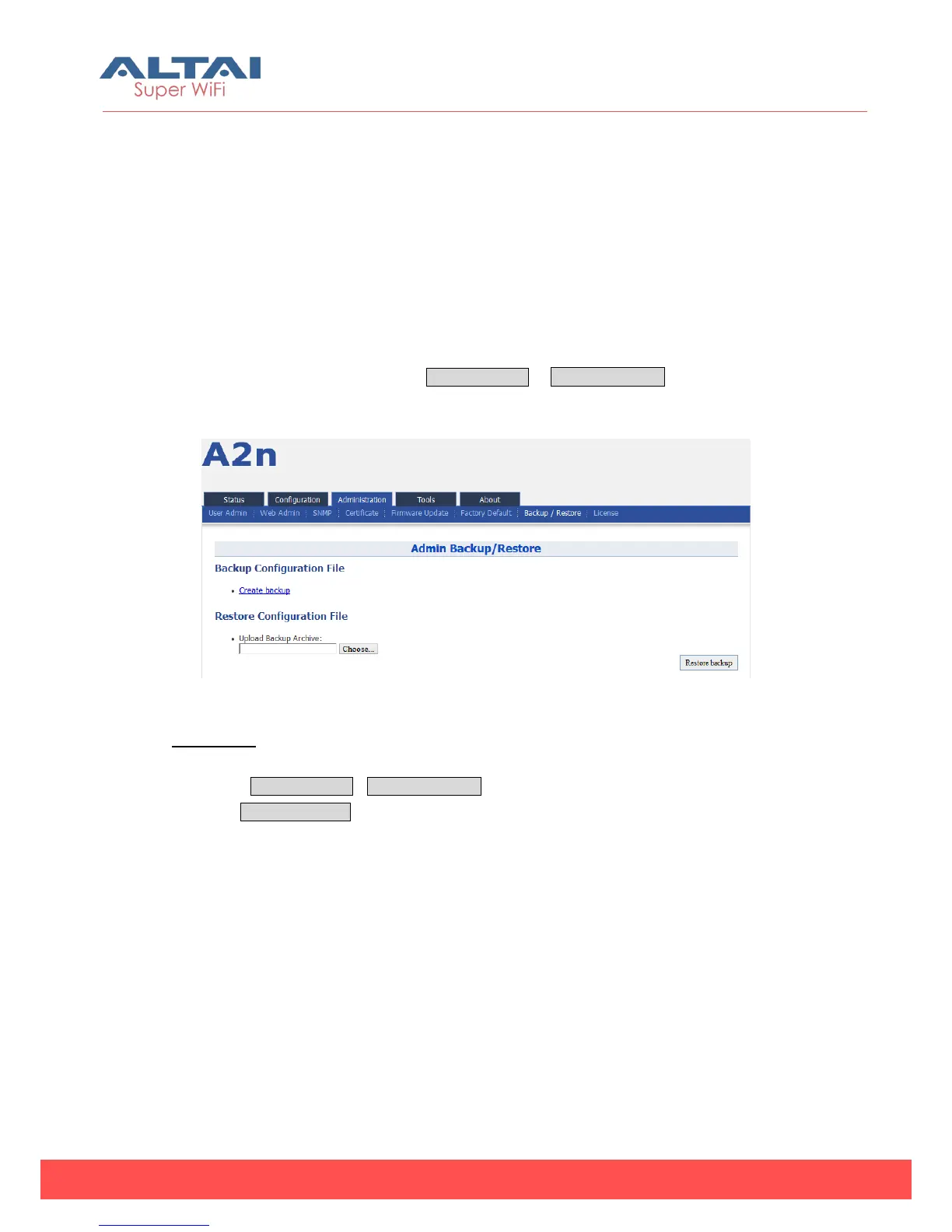 A2n supports Backup/Restore, Press Administration -> Backup/Restore to open the