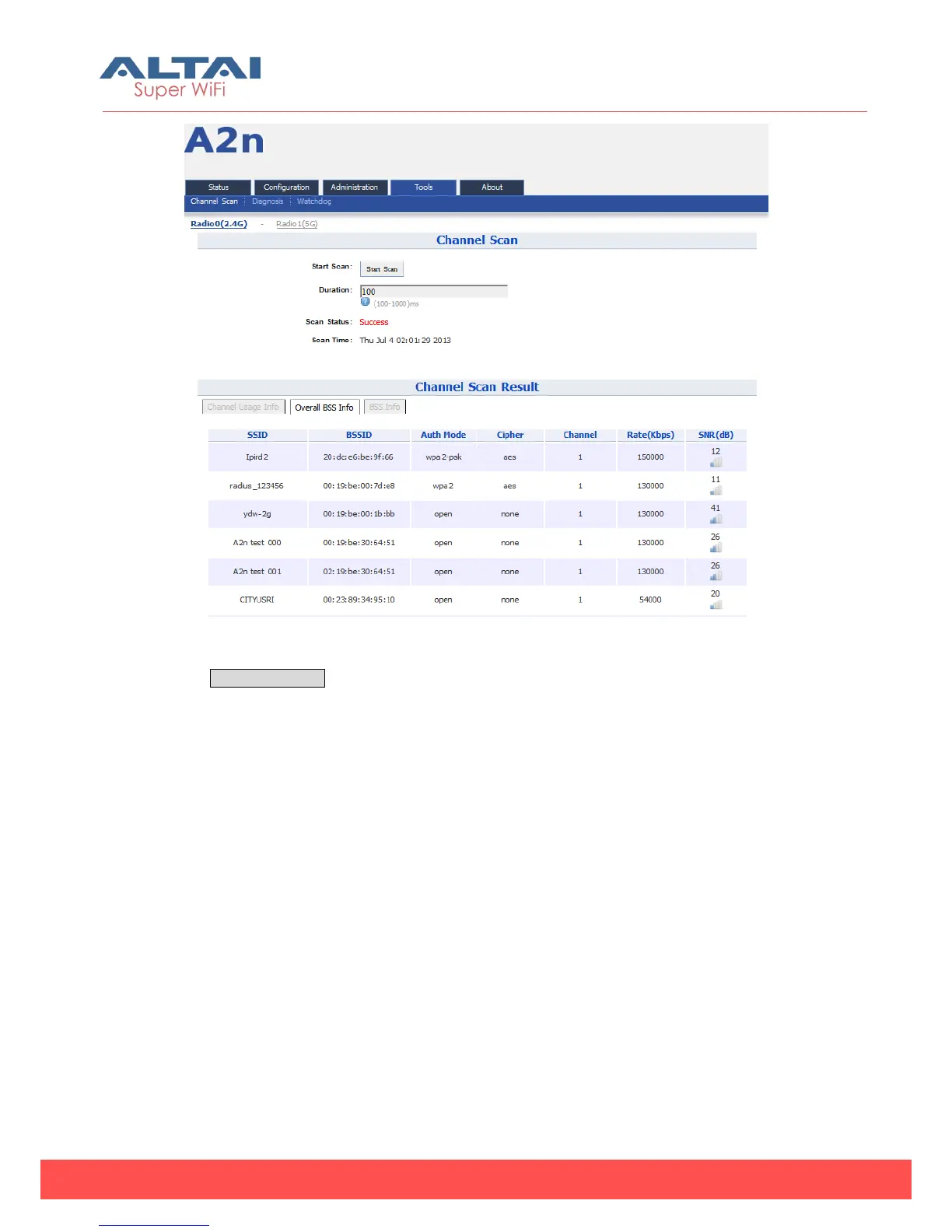 Press Overall BSS Info to view 2.4G BSS Info around A2n. It includes SSID, BSSID,