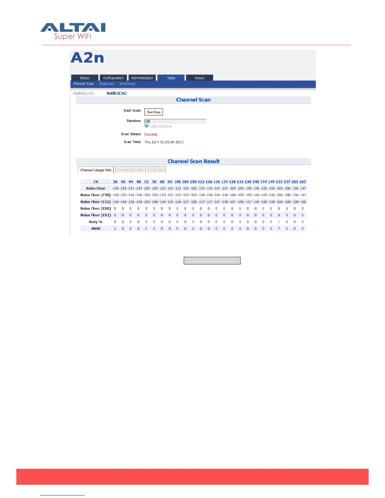 From the Channel Scan Result, press on Channel Usage Info user will see the condition