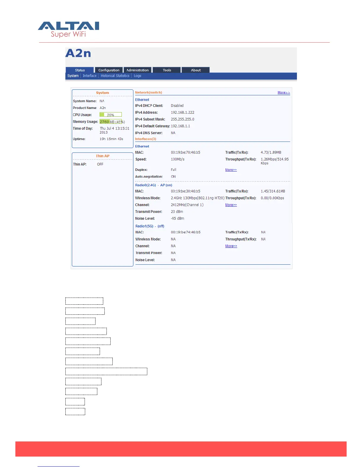 Interfaces (3) :A2n Ethernet, Radio interface information.