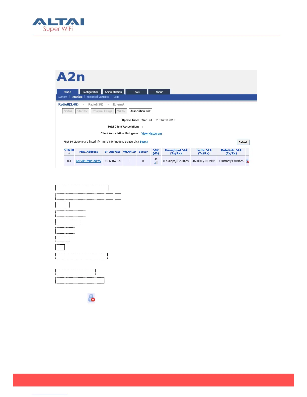 Throughput STA (Tx/Rx) :Wireless client real throughput received and transmitted