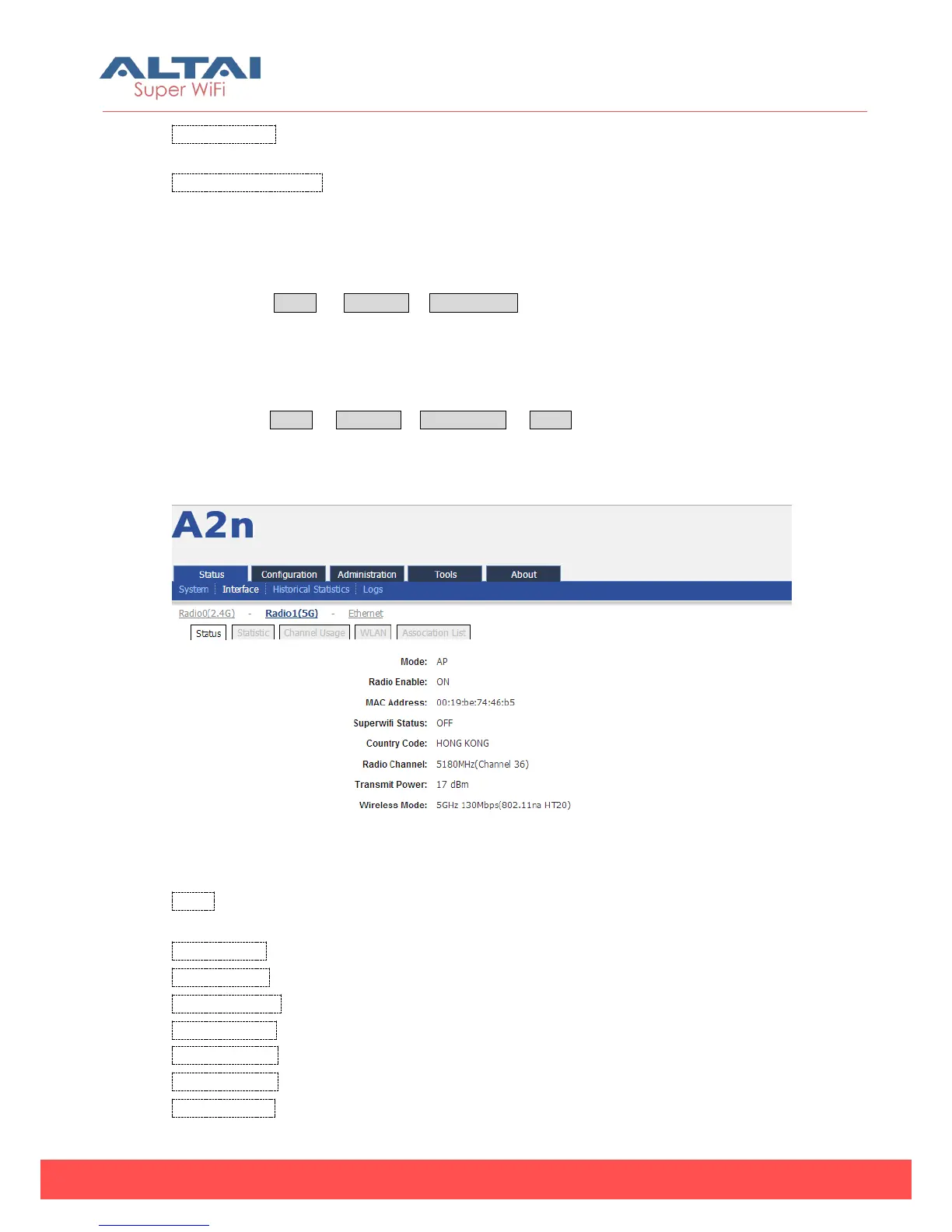 In this page, you will find Radio Mode, Radio Enable, MAC Address, Superwifi Status,
