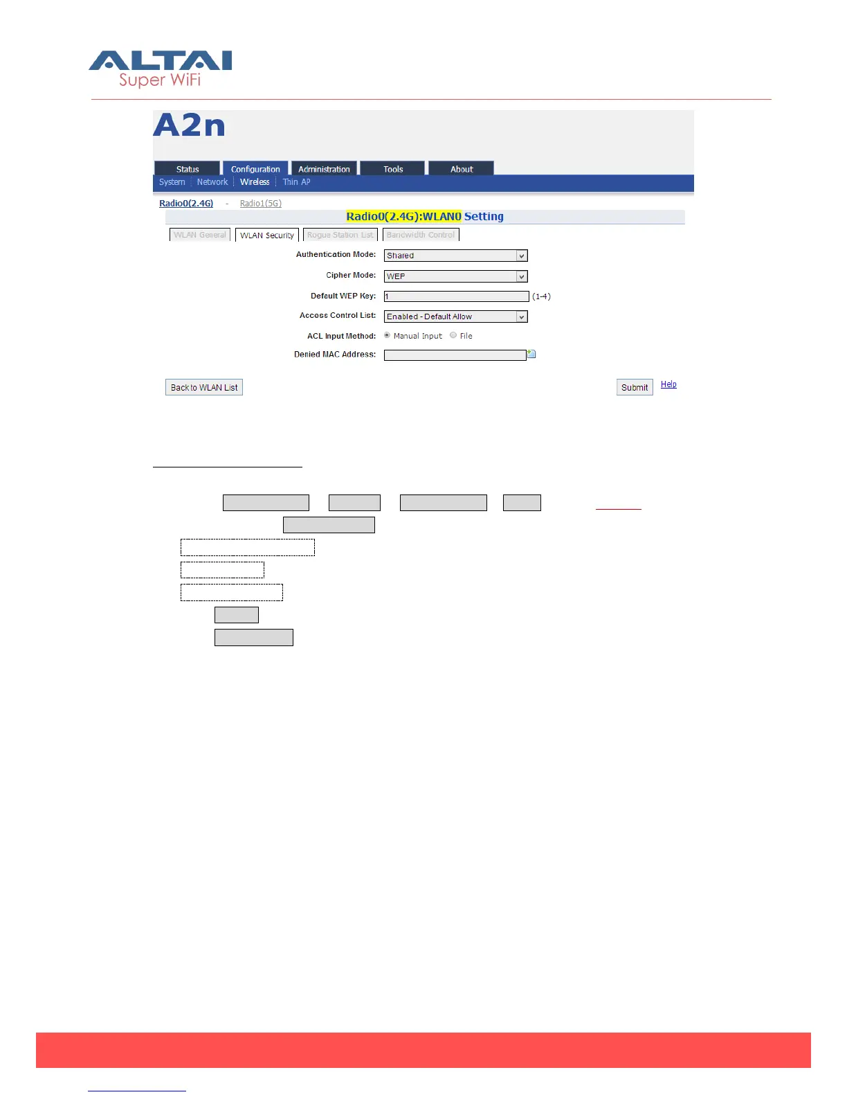 1. Select Configuration -> Wireless -> Radio0 (2.4G)-> WLAN to edit “More…” WLAN,