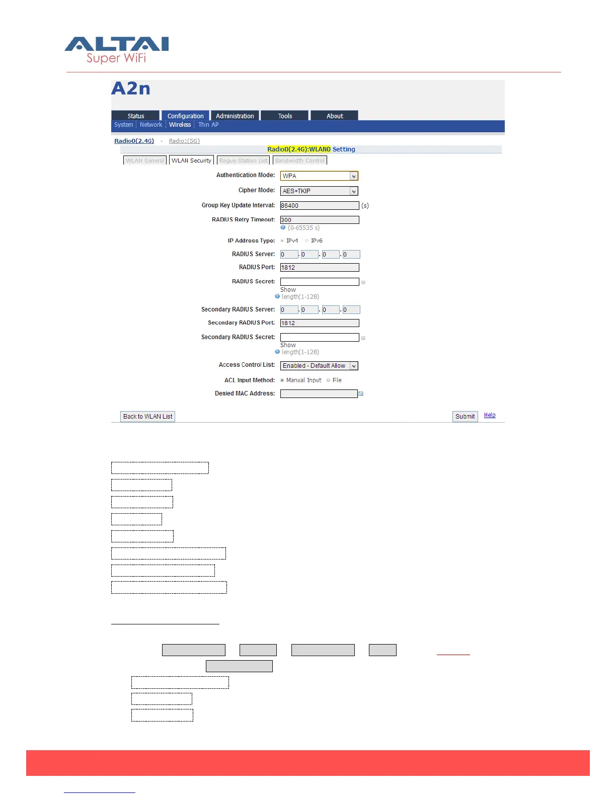 1. Select Configuration -> Wireless -> Radio0 (2.4G) -> WLAN to edit “More…” WLAN,
