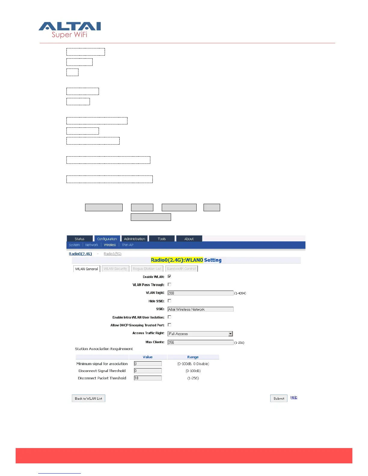 VLAN Pass-Through/ID: Set VLAN pass through or VLAN TagID this WLAN