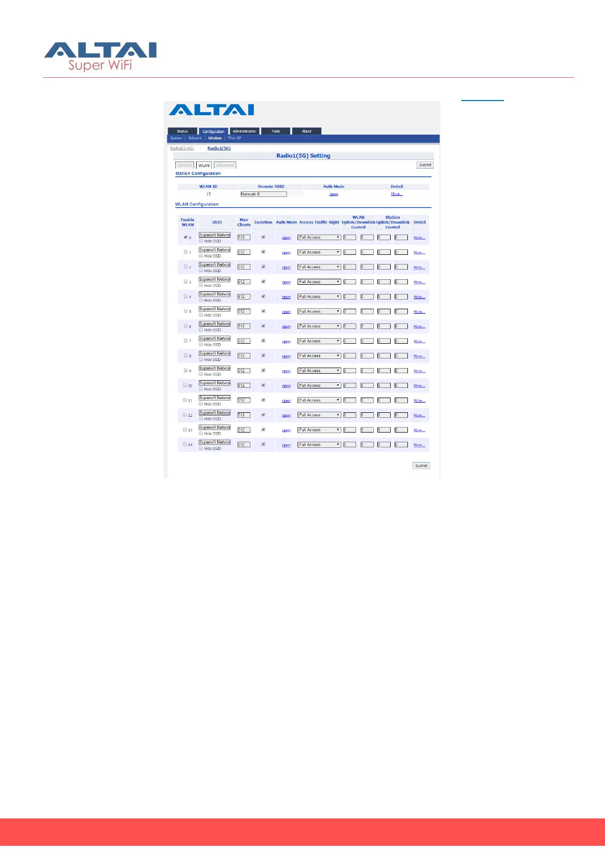 10. Go to Configuration > Wireless > Radio1(5G) > WLAN 0-15 > More…