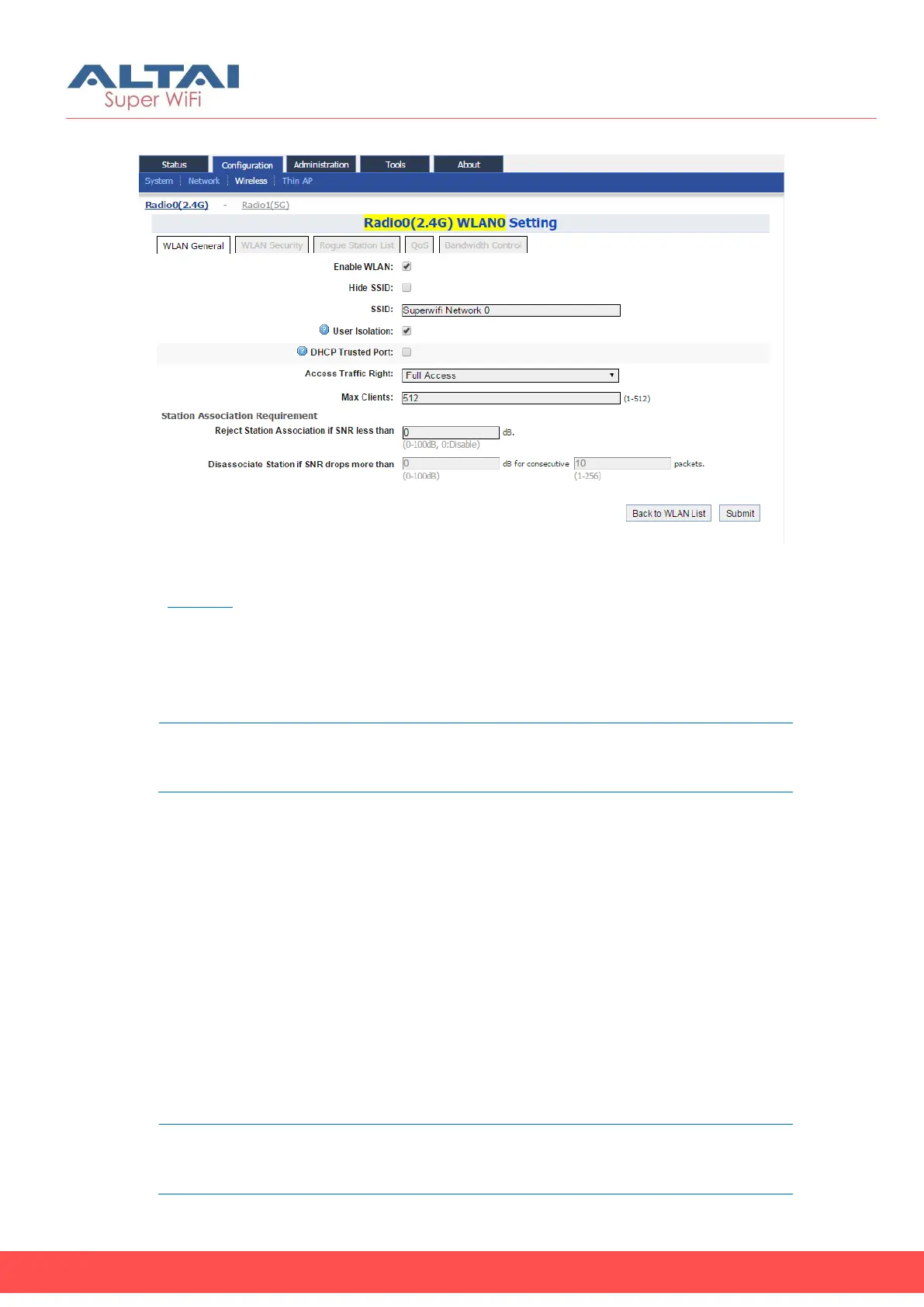 1. Go to Configuration > Wireless > Radio0(2.4G) > WLAN 0-15 >