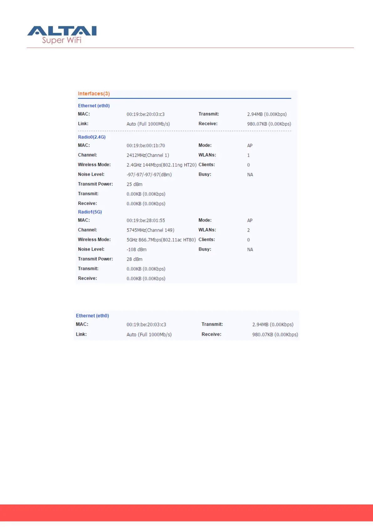 Interfaces provide the real time status of all interfaces on the A8n (ac)